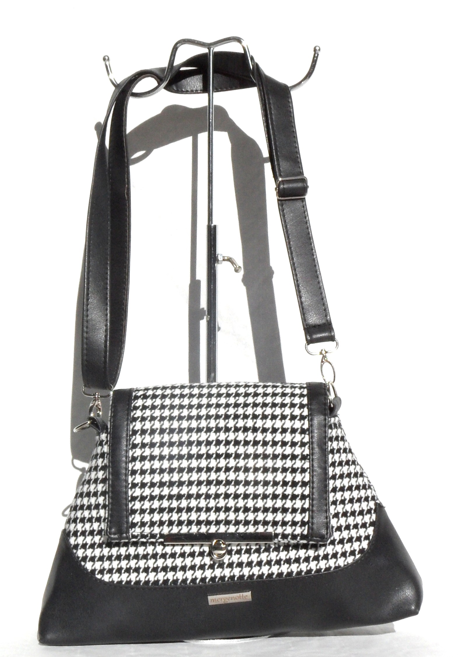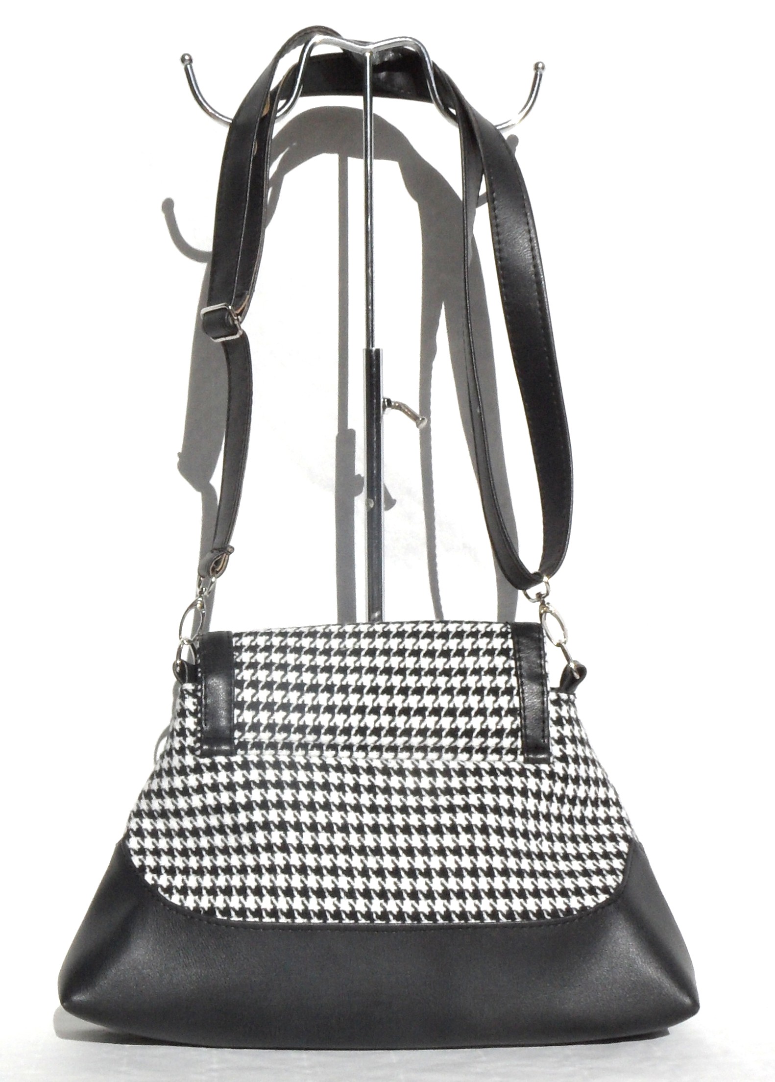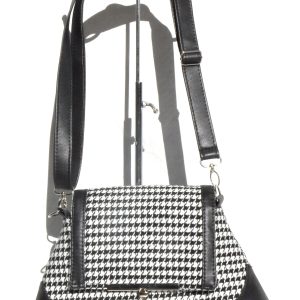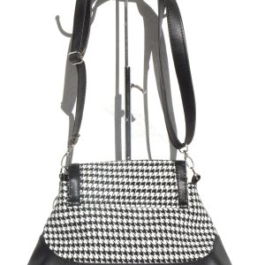 De forme originale très beau sac cuir synthétique et tissus épias » type pied de poule » poche intérieure zippée , , fermeture par rabat verrouillée. .